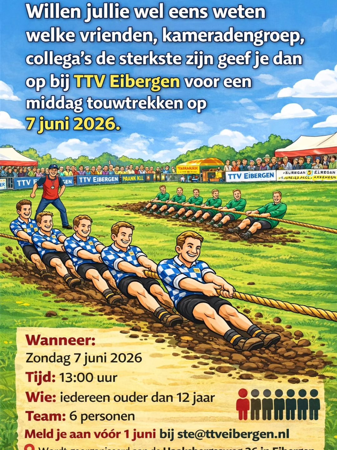 Dit is jullie kans om het eindelijk te bewijzen. Op 7 juni 2026 gaan we touwtrekken alsof de eer van heel Eibergen ervan afhangt.